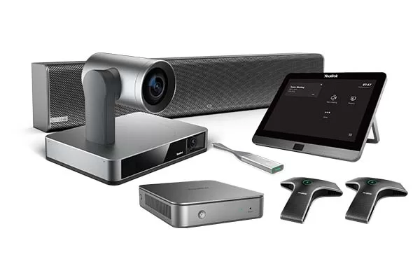 Os sistemas de salas de conferência da Yealink oferecem uma solução integrada para reuniões corporativas. Com câmeras inteligentes, microfones potentes e telas interativas, essas soluções garantem que todos os participantes, presenciais ou remotos, possam se comunicar de forma clara e eficiente.
